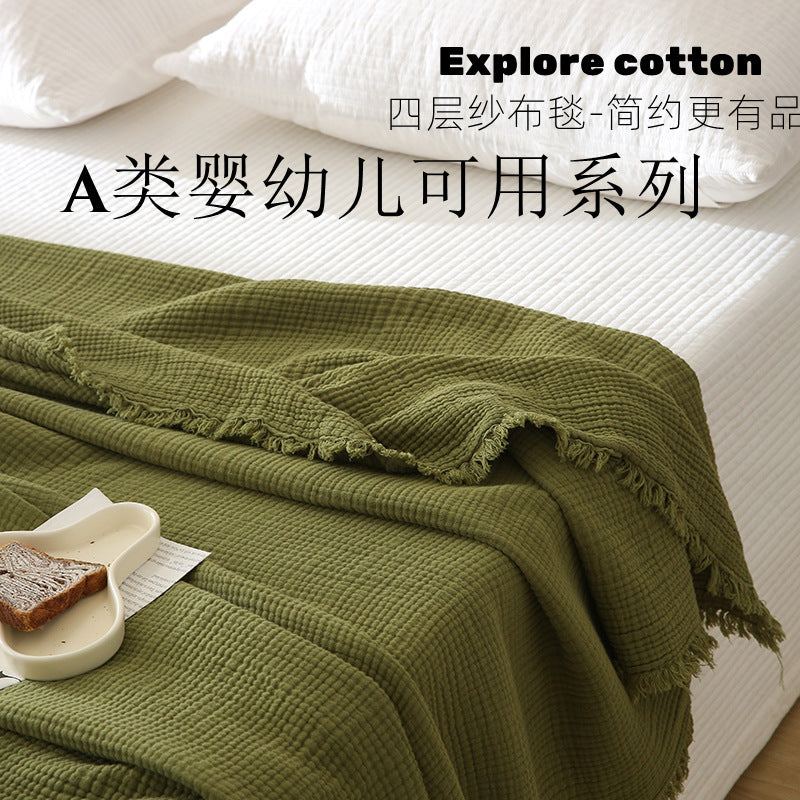 Minimalist Four-Layer Gauze Tassel Blanket Office Summer Thin Cover Blanket Air Conditioning Quilt